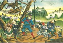 미리보는 ‘식민지 역사박물관’ 19 새해 놀이판이 된 조선, 조선인 日出新聞朝鮮雙六 일출신문조선쌍육 일제가 조선을 강제병합한 후 처음 맞이한 새해 1911년 1월 1일, 교토히노데신문(京都日出新聞)은 부록으로 일출신문조선쌍육(日出新聞朝鮮雙六)을 발행했다.(쌍육은 원래 고대 이집트나 그리스·로마제국에서 그 기원을 찾을 수 있는데 이후 중국을 통해 우리나라를 거쳐 일본에까지 전해지게 되었다. 놀이방법은 말판이 되는 쌍육판과 말, 2개의 주사위를 가지고 일대일 또는 편을 나누어 승부를 가르는 놀이로, 지금의 보드게임과 유사하다.) 이 놀이는 장승으로 표현되는 ‘출발(ふりだし)’에서 시작하여 초대 조선총독 데라우치 마사다케가 ‘병합조칙’을 읽는 ‘오르기(上り)’에 도착하면 끝난다. 총 21장의 그림으로 구성되어있는데 뒷날 황실기예원(帝室技芸員, 제도 시행 이래 1944년까지 13차례 총 79명 임명)이 된 니시야마 스이쇼(西山翠 嶂), 기쿠치 케이게츠(菊池契月) 등 21명의 화가가 한 장면씩 나누어 그렸다. 좌측 상단의 신라의 ‘공선(貢船)’은 <일본서기>의 ‘신라가 왜에 조공선 80척을 보냈다’는 기사에서 연유한 그림이다. 고대로부터 한반도는 일본의 조공국이라는 뿌리깊은 식민사관을 보여준다. 한반도의 삼한, 즉 신라, 백제, 고구려는 번국(藩國)으로서 ‘천황’에 복속되어 조공을 바쳤다는 것이다. 허구에 지나지 않지만 이러한 내용은 일본 메이지 정부가 발행한 <사범학교일본역사> 「제15대 신공황후」라는 항목에도 그대로 실려 있다. ‘공선(貢船)’과 나란히 붙어있는 오른쪽 그림은 임진왜란에서 거둔 일본(倭)의 전과를 과시하기 위해 만든 ‘이총(耳塚)’이다. 도요토미 히데요시는 ‘병사와 민간인을 가리지 말고 죽이고 여자는 물론 갓 태어난 아이까지 남기지 말고 죽여서 그 코를 베라’고 지시했고, 왜군들은 전리품으로 벤 코를 소금에 절여 교토로 보냈다.