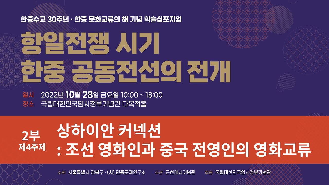 항일전쟁 시기 한중 공동전선의 전개 – 2부 제3주제|한중수교 30주년 · 한중 문화교류의 해 기념 학술심포지엄