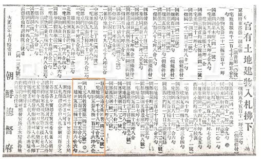 <매일신보> 1914년 7월 12일자에 수록된 ‘관유토지건물 입찰불하공고’ 내역에는 옛 전생서 터와 부속지에 대한 내용이 나란히 등장한다.