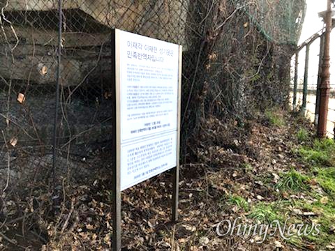 1999년 이곳에 비슷한 내용의 안내판을 세워 놓았으나 이후 누군가 훼손한 흔적이 있었고, 이날 시민들이 다시 만들어 세운 것이다.