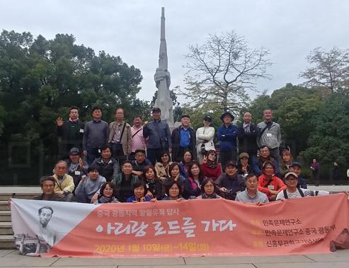 지난 1월 중국 광동지역 항일유적지 답사 중 황포군관학교기념관과 광저우 기의열사능원을 방문한 연구소 회원들 모습