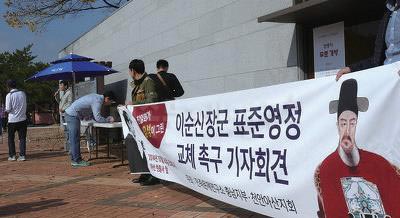 우리 연구소는 지난 2004년부터 친일경력이 있는 화가들이 그린 위인들의 표준영정에 대해 문제를 제기해왔다. 그리고 연구소 충남지부와 천안아산지회는 2014년 10월부터 아산 현충사 앞에서 “친일화가 장우성이 그린 이순신 장군 표준영정을 즉각 교체하라”는 내용의 기자회견과 서명운동을 벌여왔다.