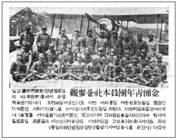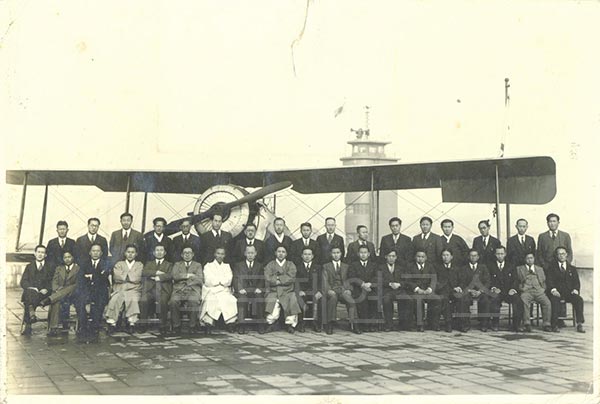 <조선·동아 100년 기획전, 일제 부역언론의 민낯>이 진행되는 식민지역사박물관 1층 돌모루홀의 쇼케이스에는 한 장의 빛바랜 옛 사진이 진열되어 있다. 비행기 한 대를 배경으로 삼고 36명이나 되는 사람들이 단체로 촬영한 기념사진이다. 이들 가운데 두루마기 차림의 방응모(方應謨, 1884~?) 조선일보 사장이 앞줄에 자리한 것이 무엇보다도 퍼뜩 눈에 띈다.