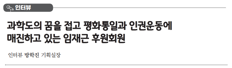 이번 달에 인터뷰하는 대전지부의 임재근 후원회원은 통일뉴스와 오마이뉴스 기자로서 대전지역의 여러 현안에 대해 적극 발언해왔으며 현재는 평화통일교육문화센터에서 교육연구팀장으로 근무하고 있다. 2006년 김창룡 묘 이장 추진 시민연대를 구성할 때 민족문제연구소를 알게 되었고 2016년 연구소 후원회원으로 가입하고 지부활동에도 열심히 참여했으며 2019년 ‘대전현충원 친일반민족행위자 백서’ 작업을 함께 진행했다.