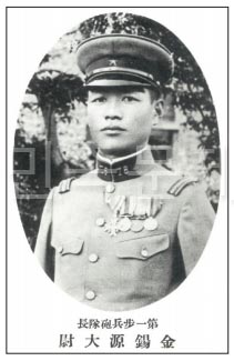 그런데 김 중좌는 부내 재동(齋洞) 출생으로 육군유년학교(陸軍幼年學校)와 육군사관학교(陸軍士官學校, 제27기)를 거쳐 육군보병학교(陸軍步兵學校)를 졸업한 후에는 중위(中尉) 시대부터 중좌가 되기까지 15년 동안 조선 제22부대에서 근무하였다. 그 동안 만주사변 당시에는 만주에 출정하여 공사(功四)의 영예를 받자왔다. 그리고 소화 14년(1939년) 1월 북지에서 개선하였다가 소화 16년(1941년) 3월 다시 북지〇〇방면에 출동하여 방금 대동아건설을 위하여 정신분투하고 있는 중이다. 더욱이 김 중좌는 근엄한 무인이고 가정은 순내지식인 가정으로서 유명한데 조선에 있을 때에는 반도민중의 황국신민화와 풍속의 개선, 문화향상 등을 위하여 노력하였고 한편 성남(城南) 중학을 설립하고 반도청년의 연성에 노력하였다.
