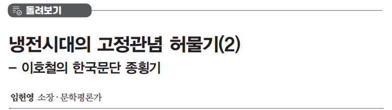 이호철에게 한국의 기성 비평문학은 임화와 백철, 조연현의 삼각구도로 비춰졌다. 최일수를 비롯한 몇몇을 임화 계열로 본 그는 중도론자인 백철에 대해 그리 신뢰감을 주지 않은 대신 문단적으로는 맹비난하면서도 조연현과 작가 김동리를 높이 평가했는데, 이건 필시 중년기를 지난 만년의 작가의 입장이 반영된 것으로 봐야 할 것이다. 내가 들은 바로는 1980년대까지의 이호철은 조연현(1981 작고)의 문단 주도에 대해서는 강력한 반감과 비판이 지속됐다. 중년기의 이호철은 <현대문학>과 조연현 지배체제의 문단 위계론에 매우 날카롭고 싸늘하게 대했는데, 만년에 너그러워진 관점이 반영된 것이 <우리네 문단골 이야기>이다. 필시 이런 관점은 1987년 자유실천문인협의회 대표를 떠난 이후 그의 문단 친밀도와 문학관에 변화가 생긴 결과로 볼 수 있을 것이다.