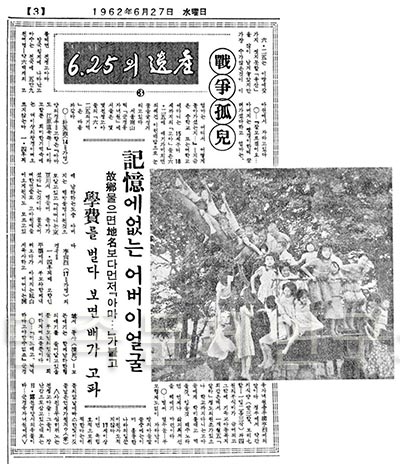 어느 특정한 주제에 관심이 꽂혀 이에 관한 흔적이나 단서를 찾기 위해 해묵은 신문자료를 맹렬히 뒤질 때가 있는데 그러다 보면 정작 찾고자 하는 내용은 아니 나오고 이것과는 전혀 무관한 별스럽고 흥미로운 자료들을 우연하게 마주치는 경우가 더러 있다. 지금 소개하려는 <동아일보> 1962년 6월 27일자에 수록된 「6.25의 유산(遺産) ③ 전쟁고아(戰爭孤兒)」라는 제목의 연재기사가 바로 그러했다.