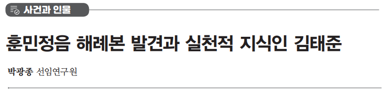 이기환, 「반갑도다! 훈민정음의 나타남이여! 1940년 <간송본>의 출현에 외솔이 외쳤다」, <경향신문> 2019.11.5