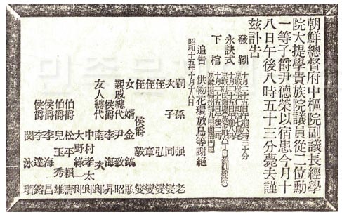조선총독부 중추원 부의장, 경학원 대제학, 귀족원 의원, 종2위 훈1등 자작 ……. 이것도 벼슬이랍시고 이러한 긴 수식어를 앞에 달고 있는 이는 대표적인 친일귀족이자 경술국적(庚戌國賊)의 한 사람인 윤덕영(尹德榮, 1873~1940)이다. 그런데 알고 보니 윤덕영이 죽었을 때 그의 영결식이 벌어진 자리가 바로 이곳 경성부민회장이었다.
