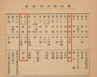 ‘제10호 조선’과 ‘제20, 21호 조선’이 표기되어 있는 <방공독본>. 번호와 기종, 헌납자(지역)가 기재되어 있다. 일본은 물론 조선과 타이완 등 식민지에서 비행기가 헌납될 때마다 순서대로 호수와 이름을 붙였다.