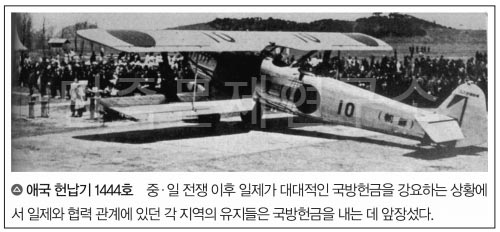 일제는 만주사변(1931년) 후 본격적인 대륙침략을 하기 위해 조선을 병참기지화하는 한편, 부족한 전쟁자금을 충당하기 위해 ‘국방헌납운동’이라는 대대적인 모금운동을 전개했다. 그 중 가장 대표적인 것이 바로 ‘애국기 헌납’이다.