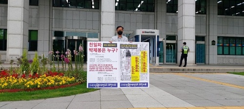 지난달 17일 릴레이 1인 시위 첫 주자인 박 지부장은 “역곡동 고택은 친일파가 살았던 집으로 일제잔재다”며 “부천시는 단죄비를 세우고 일제잔재 교육의 장으로 활용할 대책을 마련하라”고 촉구한 바 있다.