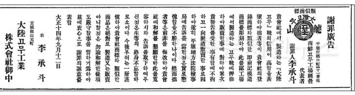 대륙고무의 유명세가 어느 정도였는지는 이곳이 조선총독의 순시행로에 포함된 적도 있었다는 사실에서 잘 확인된다. 그리고 이러한 대륙고무의 유명세에 편승하여 무단으로 상표(商標)를 도용(盜用)하였다가 결국 신문지상을 통해 공개적인 사죄광고(謝罪廣告)를 게재해야 했던 사례들도 여러 건이 있었던 것을 확인할 수 있다. 이러한 와중에 대륙고무공업주식회사의 대표취체역 사장이면서 실질적인 소유주였던 자작 이하영이 1929년 3월 1일에 숨지자 그해 7월 26일에는 그동안 감사역 자리에 있던 남작 이윤용이 대표취체역 사장에 올랐고, 이하영의 아들인 이규원 역시 대표취체역 전무에 선임되는 상황으로 바뀌었다.