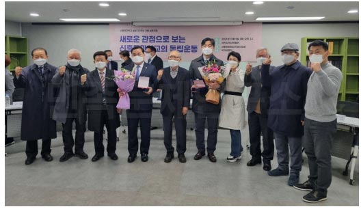 한편 심포지엄을 마치고 신흥무관학교기념사업회는 신흥무관학교 교장을 역임한 독립운동가 규운 윤기섭 선생의 조형물을 연신내역 공원에 설치하는 등 독립운동 선양에 앞장선 정준호·김진회 은평구의원에게 감사패를 수여했다.
