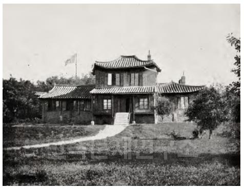 카를로 로세티가 남긴 <꼬레아 에 꼬레아니(Corea e Coreani)>(1904, 1905)에 수록된 최초의 주한 이탈리아영사관 전경이다. 원구단 황궁우를 바로 등진 자리에 있던 이곳은 원래 곤당골교회이자 무어 목사의 사택이었고, 그 이후 시기에 대한중앙도서관 임시사무소와 사립봉명학교가 차례대로 들어서게 된다. (자료제공 : 이돈수 한국해연구소장)