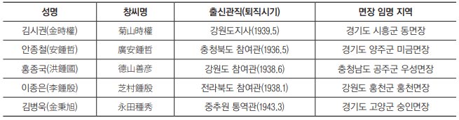 이른바 ‘거물면장’ 5인의 임명 내역(1943년 4월 1일자)