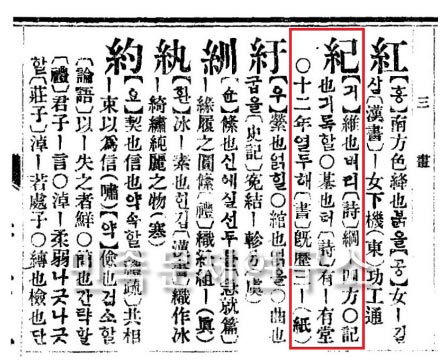 신문관에서 펴낸 <신자전(新字典)>(1915)의 ‘기(紀)’ 항목에는 이 글자가 “12년(十二年, 열두해)”
