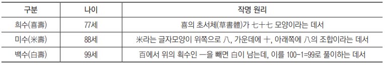 일본에서 유래한 ‘희수’, ‘미수’, ‘백수’라는 표현의 작명 원리