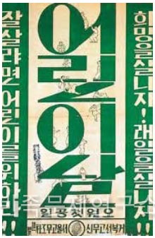 어린이날이 5월 첫 번째 일요일 날로 바뀐 뒤의 포스터, 아래에 ‘오월첫공일’이라고 쓰여 있음.