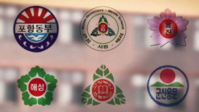 광복 직후 바로 고치지 못한 것도 문제지만 더 심각한 건 광복 한참 뒤에 개교했으면서도 일본식 교표를 채택한 학교가 적지 않다는 겁니다.