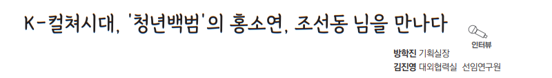 김구 선생이 <백범일지>에 남긴 ‘부강한 나라보다는 아름다운 나라, 한 없이 높은 문화의 힘을 가진 나라가 되길 바란다’는 소망도 함께 회자된다. 바야흐로 K-컬쳐의 시대, 9월 16일에 ‘어린이 백범학교’를 30년 동안 운영해온 ‘청년백범’의 조선동, 홍소연 님을 만났다.