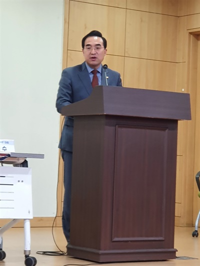 박홍근 민주당 원내대표는 이날 인사말에서 “우리는 오늘 불법적인 국회 해산이 무효임을 선언하고 유사입법기구가 만든 법률을 바로잡고자 모였다”면서 “왜곡된 과거사를 청산하고 새로운 시대를 준비하기 위해 시민단체와 국회가 함께 손을 맞잡았다”고 의미 부여했다.