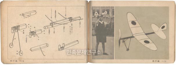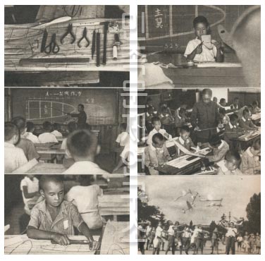 수업 시간에 각종 도구와 재료를 이용하여 글라이더를 만들어 운동장에서 비행 실습하는 학생들의 모습. 아이들에게 비행기 작동 원리와 모형 제작을 교육함으로써 미래 항공병을 키워내려고 했다.