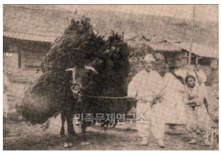 땔감용 솔잎과 그릇을 파는 지게꾼들