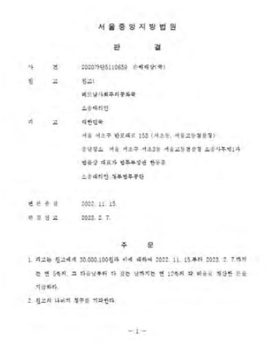 원고 승소 판결이 2023년 2월 7일 있었고, 1심 판결에도 불구하고 우리 정부는 사실관계조차 인정하지 않고 있다. 아마 정부는 항소할 것이고, 상고도 할 것이다. 법리적 문제에 대하여 상급심이 판단을 달리할 수도 있겠고, 대법원이 몇 년 동안 아무런 판단을 하지 않고 귀중한 시간을 허비할지도 모른다. 하지만 1심이 인정한 사실이 바뀌는 일은 없을 것이다.