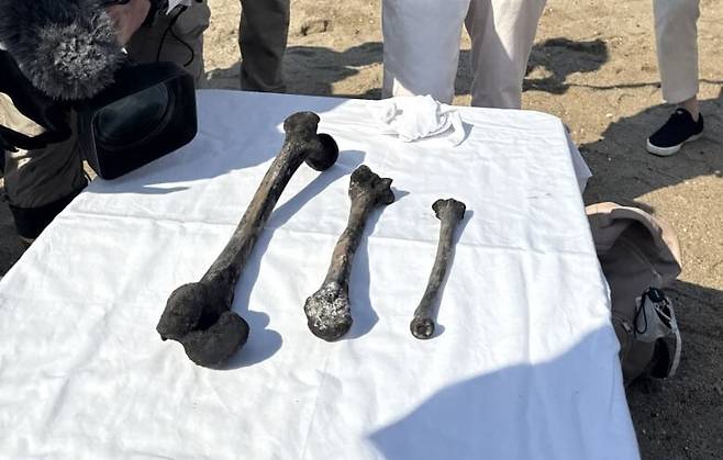 일본시민단체 ‘조세이 탄광의 물비상(수몰사고)을 역사에 새기는모임’(새기는 모임)은 25일 한겨레에 “조세이해저탄광 수몰사고 희생자 유골 발굴 조사를 위한 안전 조처 도중 한국인 잠수사가 사람 뼈로 추정되는 유골을 여러 개 발견했다”고 밝혔다. 이날 수중 수색에 투입된 잠수사들은 조사 현장에 희생자 것으로 추정되는 유골 최소 3점을 공개했다.