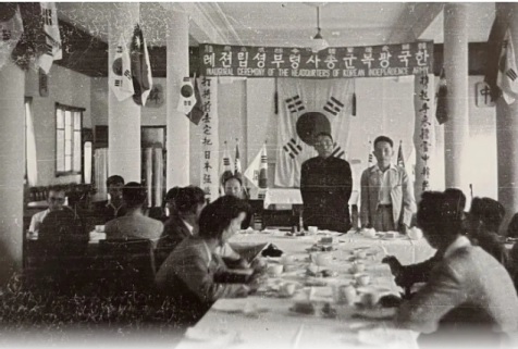 먼저 김구 선생이 개회를 선포코저 장내에는 별안간 사방에서 번개가 번쩍거리고 찰칵찰칵 소리가 들리니 이것은 중국 홀의 중국전형 제편창과 각 신문사 카메라맨들이 공작을 개시한 것이다. 『신한민보』 1941.2.6