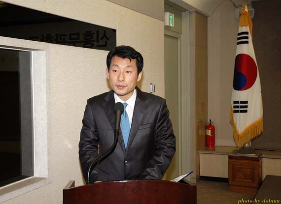 14.정관 인준과 임원안 통과를 선포하는 전기호 대표