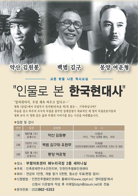 알림 [강좌안내] 인물로 본 한국현대사 (10.14~) By 민족문제연구소 - 2015년 10월 12일 2748 NO COMMENTS 소식 알림 성명논평 보도자료 주요기사 지부활동 화보 9,998
