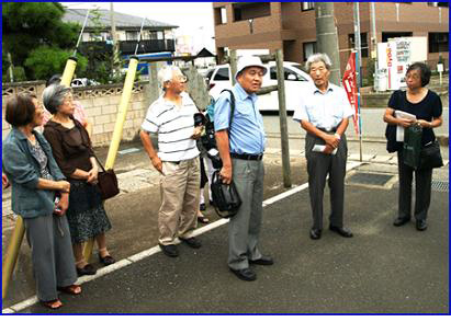 조용한 주택가에 자리한 관음사로부터 학살현장인 목련나무 아래까지는 불과 5분도 안 되는 거리였다. 일본은 무덤관리를 절에서 해주고 있는데 관음사에도 많은 무덤이 있어 때마침 양력 추석 성묘를 나온 사람들이 제법 눈에 띄었다. 무덤 곁을 지나 마을 안길로 들어서니 풀들이 무성한 곳이 나타났다. 히라가타 씨에 따르면 관음사 일대에는 일본 강점기 때 육군 훈련병 연습장이 있던 자리였다고 하나 지금은 그런 사실을 아는 듯 모르는 듯 학살 현장인 나기하라의 커다란 목련 나무는 푸르름을 간직한 채 답사단을 맞이했다. 목련꽃 나무 아래에서 학살 당시 설명을 해준 분은 오다케 할머니였다. 그는 올해 79살로 건강이 안 좋아 보였지만 학살 당시를 설명할 때는 어디서 그런 힘이 솟구치는지 쩌렁쩌렁했다. 오다케 할머니는 학살당한조선인과 목련 나무를 다음과 같이 얘기했다. “여기 목련 나무 아래에 조선인을 학살해서 묻었어요. 조사단이 이 자리를 발굴하자 6구의 시체가 엉켜있었지요. 이 목련 나무는 해마다 어떤 꽃보다 먼저 꽃이 피는데 여기서 학살당한 조선인들의 영령이 아닌가 싶어요.” | |||