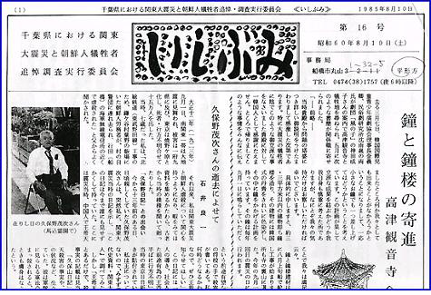 목련꽃 나무 밑에서 학살 증언을 듣고 나서 우리는 관음사에 세워진 조선인희생자 위령비에 분향·헌화했다. 위령비 옆에는 단청이 선명한 종루와 그 안에 커다란 평화의 종이 걸려있었는데 이는 한국국제아동청소년연극협회이사장 김의경 씨와 민속극연구소 심우성 씨 등이 기증한 것으로 1985년 9월1일 관동대지진 추모 62주년을 맞이하는 날에 맞춰 타종식을 했다. | |||