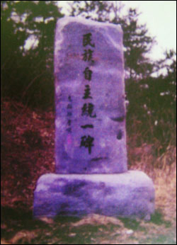 ‘자주통일비'(높이 220㎝, 너비 80㎝,기단 90㎝)는 정효순 범민련 고문(86)이 지난 2003년 5월 8일 사재를 털어 세운 것으로 앞에는 ‘민족자주통일비’를 음각하고, 뒤에는 ‘7·4남북공동성명 중 조국통일 3대원칙’과 ‘6·15남북공동선언문 중 5개항’을 새겼다.