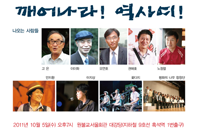 [하단에 첨부한 콘서트 자료집에는 수구세력과 현 정권의 역사 테러가 낱낱이 수록된 역사전쟁 일지가 포함되어 있습니다. 일독하시면 현재 진행되고 있는 역사파괴가 얼마나 조직적이고 치밀한지 알 수 있을 것입니다.]