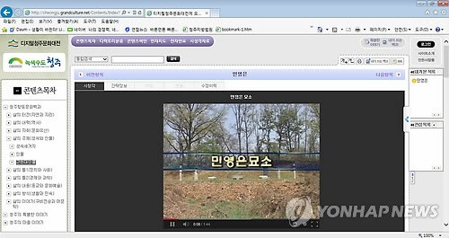 | ‘친일파 민영은’ 육영독지가로 소개한 청주시 향토문화 사이트 (청주=연합뉴스) ‘친일파’ 민영은의 후손과 토지 반환 소송을 벌이는 청주시가 개설한 향토문화 사이트 ‘디지털 청주문화대전’이 민영은을 일제시대 지역을 대표하는 ‘육영 독지가’였다고 소개, 빈축을 사고 있다. 이 사이트는 민영은이 일제강점기 청주지역의 학교 설립에 공헌했다는 내용과 사진·동영상 자료를 개재했다. 2013.7.18 <<인터넷사이트 디지털 청주문화대전 캡쳐>> |