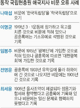 기사원문: ☞[단독]국립현충원 애국지사 묘비 오류투성이