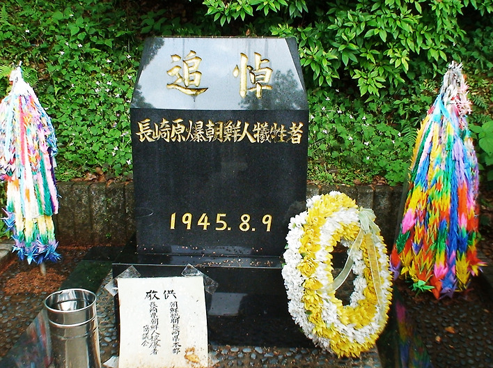 그것만이 아닙니다. 나가사키에 떨어진 원자폭탄 피해로 수많은 사람들이 죽자 섬에서 일하던 노동자들이 시체 수거 작업에 동원되어 피폭을 당하기도 했습니다. 얼마나 많은 조선 사람들이 피폭을 당했는지 알 수 없었습니다. 오카 마사하루(岡まさはる) 씨를 비롯한 ‘나가사키 재일조선인 인권을 지키는 모임’의 시민들이 발로 뛰어 다니며 조사한 끝에 약 2만 명의 조선 사람들이 피폭을 당했고, 그 가운데 약 1만 명의 사람들이 희생되었다는 사실을 추정해 낸 것이 1979년의 일입니다.