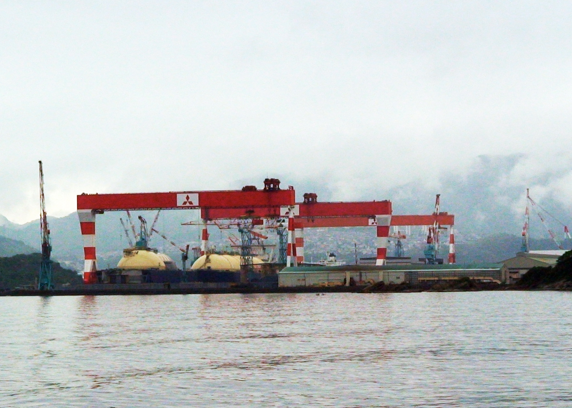제가 탄 배가 나가사키 항구를 벗어나자마자 세 개의 다이아몬드 모양으로 만들어진 미쓰비시(三菱)의 마크가 선명한 거대한 크레인들이 눈앞에 들어왔습니다. 나가사키 미쓰비시 조선소입니다. 귀국선이 파도에 휩쓸려 많은 조선 사람들의 시체가 떠올랐다는 바로 그 곳입니다.