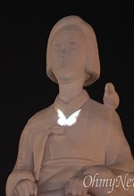 | ▲ 일본군 ‘위안부’ 굴욕 합의 전면 무효화를 촉구하는 시민문화제 ‘할매, 우리가 다 기억하고 있제라’가 3일 오후 7시 광주 동구 5.18민주광장(옛 전남도청)에서 열렸다. 무대 위에 설치된 높이 6m의 소녀상 가슴에 하얀 나비 형상이 비춰지고 있다. | |