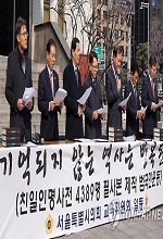 조 대표는 “지방재정법에 국가 정책에 반하는 경우 지방예산을 편성할 수 없도록 돼 있고 반민족행위진상규명법도 일제시대에 일정한 관직에 있었다는 이유만으로 친일행위로 규정해선 안 된다고 규정하고 있다”며 시의회의 친일인명사전 구입 예산 의결이 직권남용이라고 주장했다.