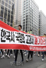 ▲ 전국교육대학생연합 학생들이 9일 서울 시청 인근에서 ‘한국사 국정화 교과서 폐기 및 공교육 정상화를 위한 전국 초등 예비교사 총궐기’ 행진을 하며 한국사 국정화 교과서 폐기를 촉구하고 있다.ⓒ정의철 기자 |