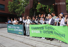 “한·일 정부, 강제동원 문제 포괄적 해결 위해 나서야” (서울=연합뉴스) 박의래 기자 = 시민단체들이 정부가 19일 발표한 ‘강제징용 피해자 배상판결 해법’에 대해 “피해 당사자들의 의견을 공식적으로 들은 바가 없다”고 비판했다. 근로정신대할머니와 함께하는 시민모임, 민족문제연구소 등 시민단체들로 구성된 ‘강제동원 문제해결과 대일 과거청산을 위한 공동행동’은 20일 성명을 통해 “정부는 각계 인사 의견 및 여론을 청취했다고 하지만 피해자들의 의견을 전혀 반영하지 않았다”고 주장했다. 이들은 “2015년 일본군 위안부 합의의 잘못을 다시 되풀이하고 있는 정부에 커다란 실망을 금할 수 없다”며 “지금이라도 강제동원 피해자들의 목소리에 귀를 기울이고, 피해자 중심주의에 근거해야 한다”고 강조했다. 이어 “정부안은 일본 정부와 피고 기업의 사죄와 배상을 포함한 피해 회복, 피해자 추모, 역사교육을 통한 재발 방지 등 과거사 문제해결의 기본원칙조차 제시하지 않은 채 확정판결 피해자들의 위자료 지급 방안만 제시하는 데 그쳤다”고 지적했다. 단체는 “한국 사법부 판결을 이행하지 않는 일본기업과 판결 이행을 가로막는 일본 정부를 강력히 규탄한다”며 “한일 정부는 과거사 문제해결의 기본원칙에 따라 이 문제의 포괄적인 해결을 위해 협의에 나서야 한다”고 요구했다. 정부는 지난 19일 ‘한일기업이 위자료를 부담한다’는 내용의 강제징용 피해자 배상판결 해법을 내놨지만, 일본 정부가 곧바로 거부 입장을 밝히면서 논란이 되고 있다. laecorp@yna.co.kr <2019-06-20>연합뉴스 ☞기사원문: 시민단체 “정부 강제징용 해법, 피해자 의견은 안 들어” ※관련기사 ☞SBS: 시민단체 “정부 강제징용 해법, 피해자 의견은 안 들어”
